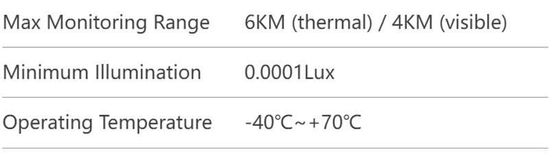 Kanał obrazowania termicznego: rozdzielczość 640 × 512 z zakresem wykrywania do 6KM